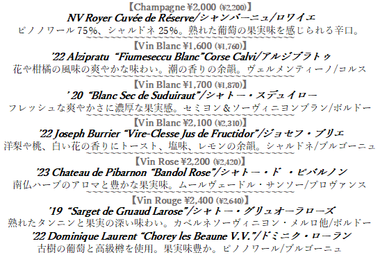 11, 12月 グラスワインメニュー